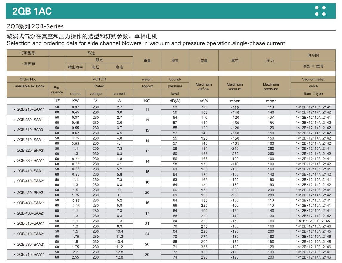 品牌:梁瑾 型号:2QB 310-SAA11 材质:铸铝 风机压力:高压风机 性能:低噪音风机 用途:管道风机 轴功率:0.37 kw 叶片数:1 重量:11 kg 涡轮头性质:离心式 转速:2800 配套电机功率:0.37 kw 适用范围:电子自动化设备配套等行业 梁瑾漩涡风机单相220V漩涡气泵0.37KW低噪音旋涡气泵单相220V漩涡气泵0.37KW低噪音旋涡气泵--上海梁瑾机电设备有限公司,单相鼓风机自进入市场以来,深受广大新老客户的信赖和支持,风机具在大风量,高压力,轻量化,寿命长,低噪音等特点,规格型号齐全,发货迅速.了解更多相关产品,请致电我们!2QB 210-SAA11高压风机产品特点:1、具备一机两用功能,同一款产品同时具备吸风和吹风功能。并且还能同时使用吸风和吹风功能。2、采用的是无油运转,能使鼓风机输出的空气更加的干净纯净。3、2QB 310-SAA11风机压力高、风量大、噪音低、机器重量轻。环形高压鼓风机是专用马达装配方式。大大加强了风的压力。4、采用特殊叶片设计,其叶片制造精准度高、耐磨损、风力大、使用寿命长。5、质量可靠、能在海拔5000以上的环境下正常工作,耐高温,耐严寒。5、免维护使用,在质保期之内,基本上不需要任何维护。漩涡风机适用范围:印刷机械、玻璃工业、冰场空气泵、燃烧机、纺织机械、吹袋机淋膜机、塑胶押出机、制果机械、集尘机、环境机械、木工机械、热风发生机、粉粒体输送机、厨房械机、干燥机、焚化炉、恒温箱、机械冷却、重油喷燃设备、底片处理、造纸纸浆脱水、水产养殖气供给等等。 -